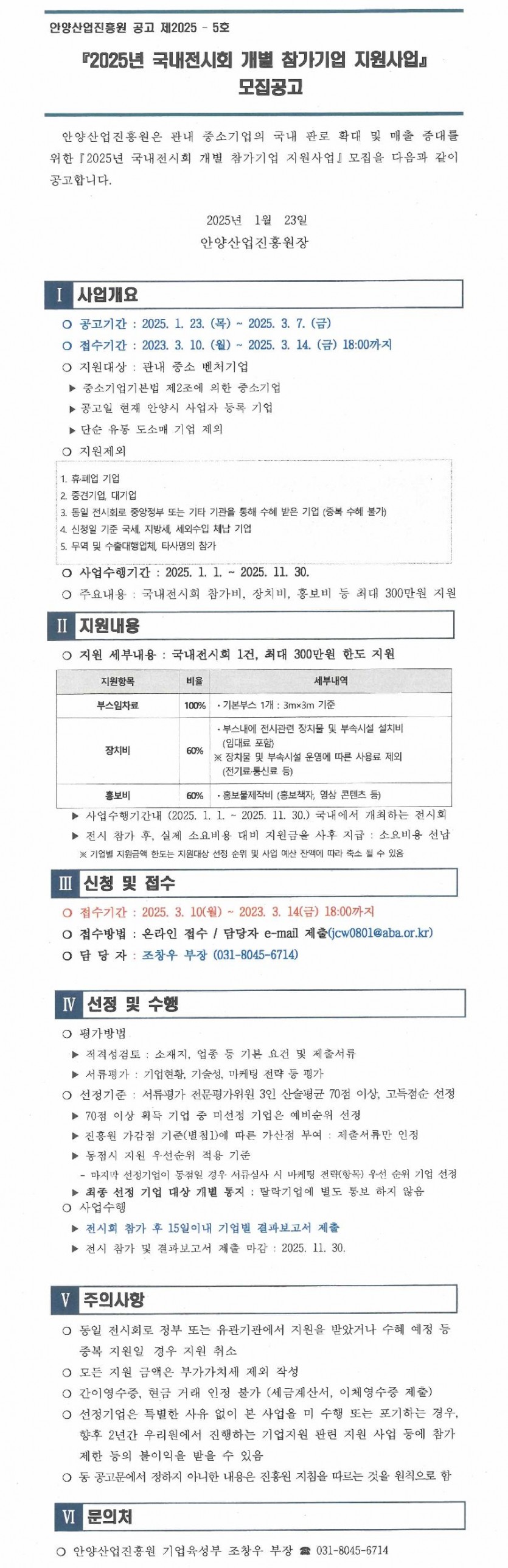 [경기 안양] 2025년 국내 전시회 개별 참가기업 지원사업 모집 공고